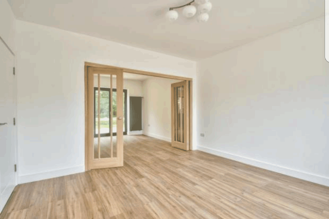The living room benefits from a large window, radiator, laminate floor, modern looking dimmable ceiling light, television point, telephone point, internet point, plus plenty of electric sockets all around the room. There is an attractive sliding door between the living room and the dinning room, which when opened creates a delightful open space that includes the living room, dining room and the kitchen all in one!