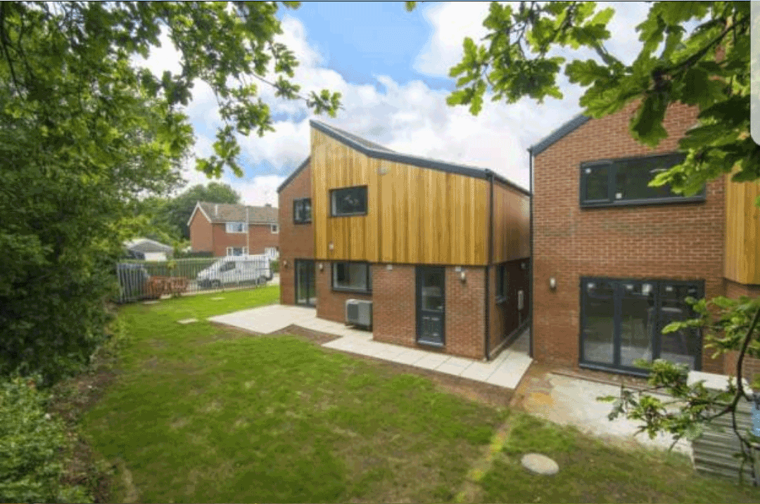 External Doors, Windows, Fascia boards, downpipes and guttering all finished in anthracite grey to bring the modern look to the house, and blends in very well with the Canadian Western Red Cedar Cladding and the outside landscape.